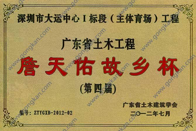 • 2012-第四届广东省土木工程詹天佑故乡杯《深圳市大运中心Ⅰ标段(主体育场)工程》