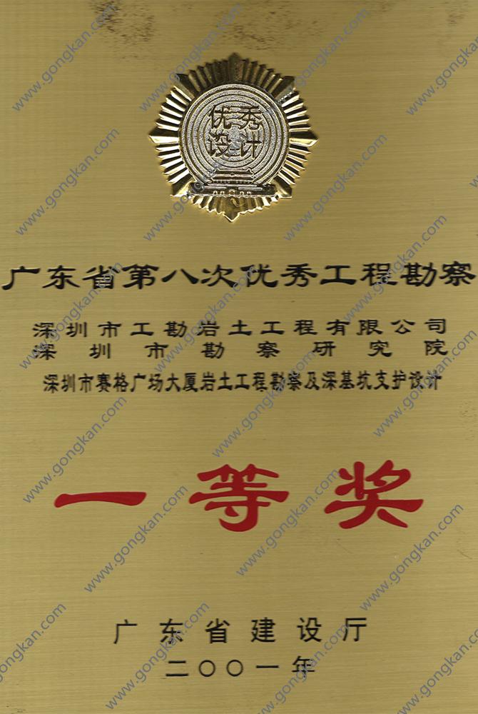 • 2001-深圳市赛格广场大厦岩土工程勘察及深基坑支护设计 一等奖