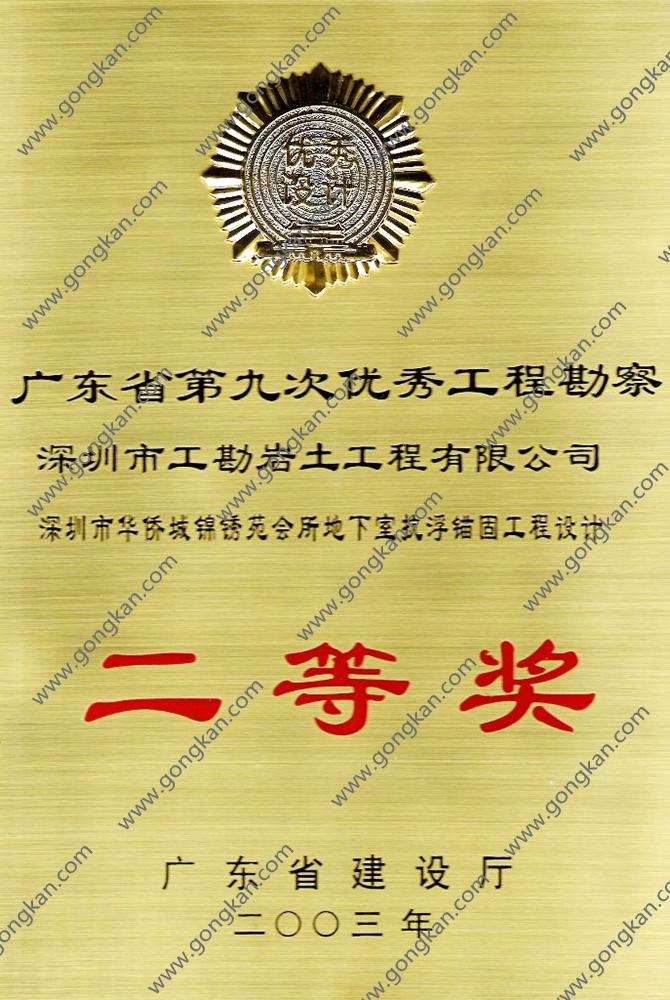 • 2003-深圳市华侨城锦绣苑会所地下室抗浮锚固工程设计 二等奖