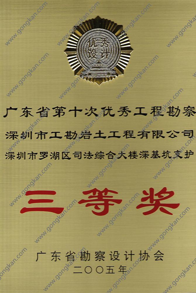 • 2005-深圳罗湖区司法综合大楼深基坑支护工程设计 三等奖