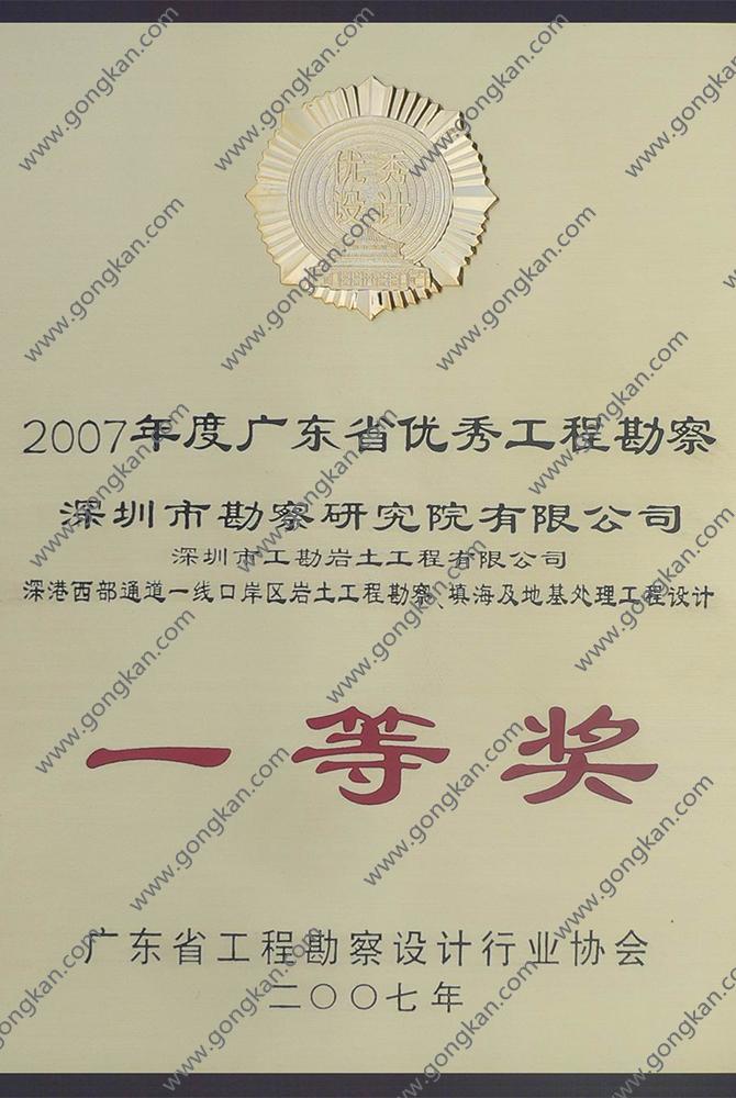 • 2007-深港西部通道一线口岸 一等奖