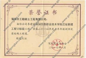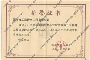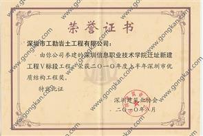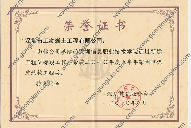 2010-深圳市优质结构工程《深圳信息职业技术学院迁址新建工程Ⅴ标段》