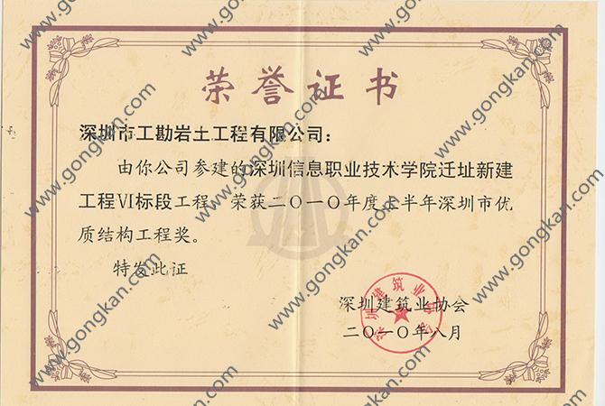 2010-深圳市优质结构工程《深圳信息职业技术学院迁址新建工程Ⅵ标段》