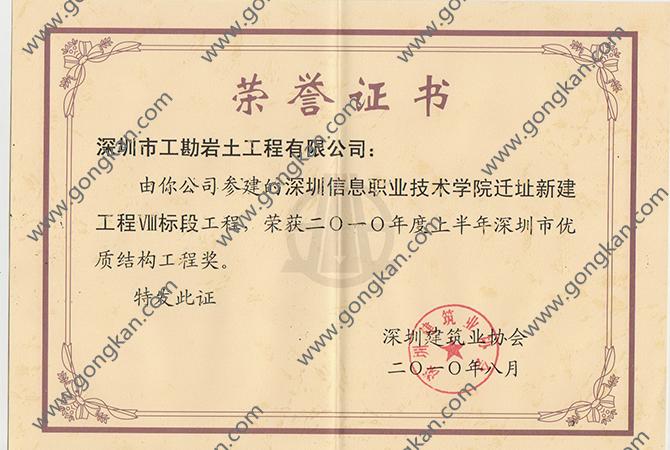 2010-深圳市优质结构工程《深圳信息职业技术学院迁址新建工程Ⅷ标段》