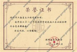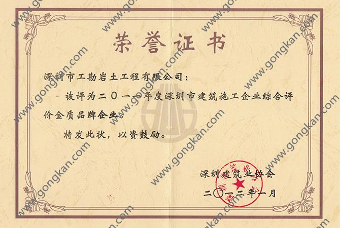 2011-年度深圳市建筑施工企业综合评价金质品牌企业