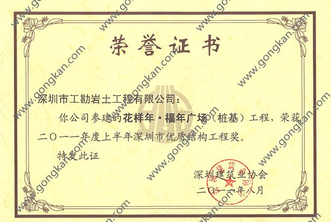 2011-深圳市优质结构工程《花样年·福年广场(桩基)工程》