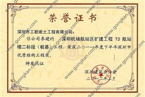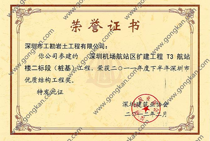 2011-深圳市优质结构工程《深圳机场航站区扩建工程T3航站楼(二标)》