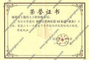 2010-深圳市优质结构工程《深圳市滨海医院Ⅲ标段桩基》