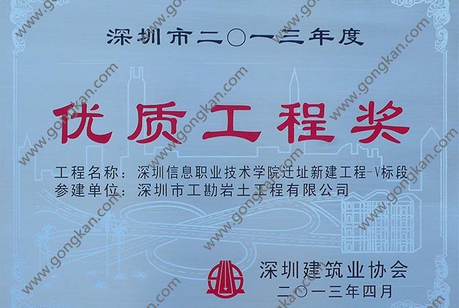 2013-深圳市优质结构工程《深圳信息职业技术学院迁址新工程-Ⅴ标段》