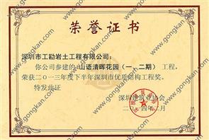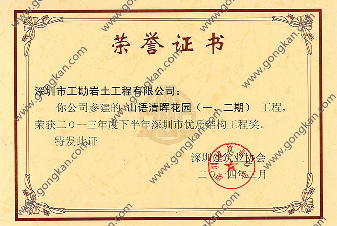 2013-深圳市优质结构工程奖荣《山语清晖花园(一、二期)工程》