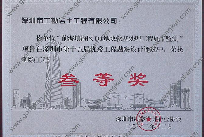 2012年度深圳市第十五届优秀工程勘察设计奖测绘工程三等奖《前海填海区D1地块软基处理工程施工监测》