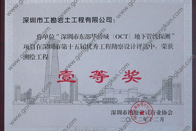 2012年度深圳市第十五届优秀工程勘察设计奖测绘工程一等奖《深圳市东部华侨城(OCT)地下管线探测》