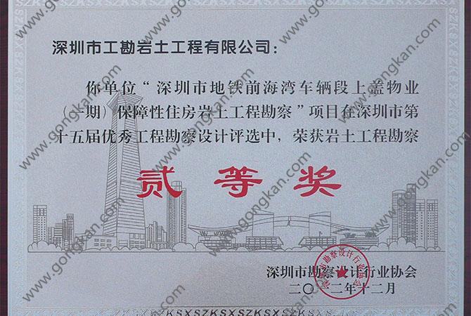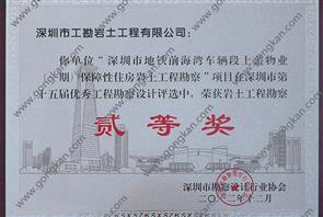 2012年度深圳市第十五届优秀工程勘察设计奖岩土工程勘察二等奖《深圳市地铁前海湾车辆段上盖物业(一期)保障性住房岩土工程勘察》