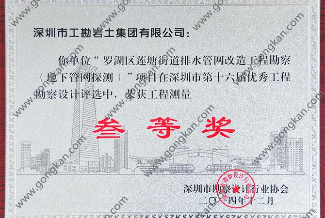 2014年度深圳市第十六届优秀工程勘察设计奖工程测量三等奖-罗湖区莲塘街道排水管网改造工程勘察(地下管网探测)