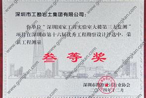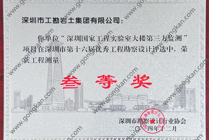 2014年度深圳市第十六届优秀工程勘察设计奖工程测量三等奖-深圳国家工程实验室大楼第三方监测