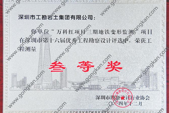 2014年度深圳市第十六届优秀工程勘察设计奖工程测量三等奖-万科红项目三期地铁变形监测