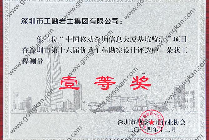 2014年度深圳市第十六届优秀工程勘察设计奖工程测量一等奖-中国移动深圳信息大厦基坑监测