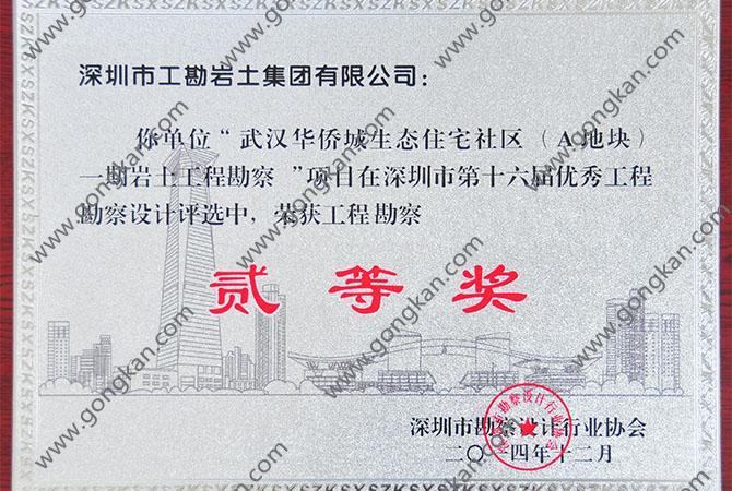 2014年度深圳市第十六届优秀工程勘察设计奖工程勘察二等奖-武汉华侨城生态住宅社区(A地块)一期岩土工程勘察