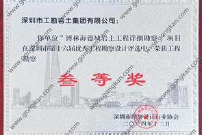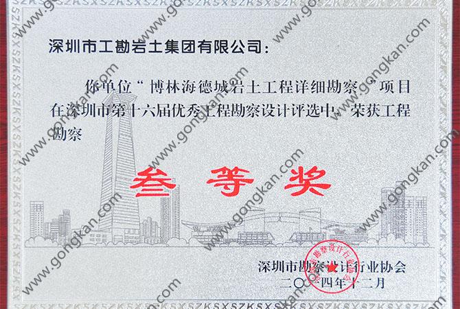 2014年度深圳市第十六届优秀工程勘察设计奖工程勘察三等奖-博林海德城岩土工程详细勘察
