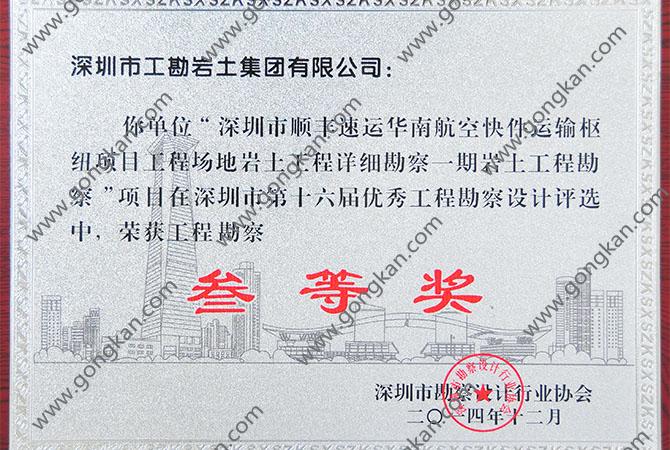 2014年度深圳市第十六届优秀工程勘察设计奖工程勘察三等奖-深圳市顺丰速运华南航空快件运输枢纽项目工程场地岩土工程详细勘察