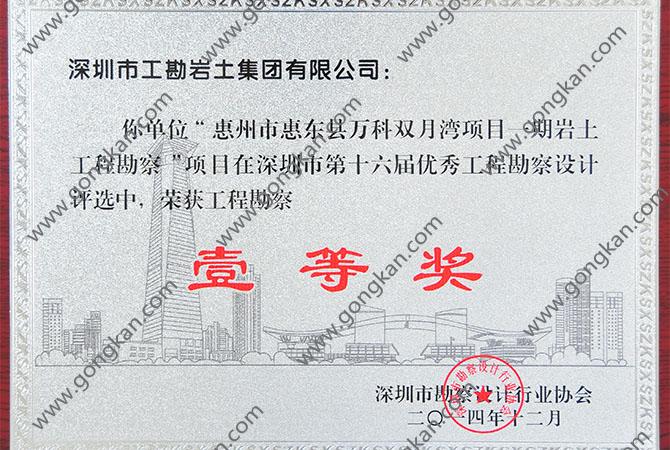 2014年度深圳市第十六届优秀工程勘察设计奖工程勘察一等奖-惠州市惠东县万科双月湾项目一期岩土工程勘察1