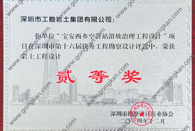 2014年度深圳市第十六届优秀工程勘察设计奖岩土工程设计二等奖-宝安西乡空管站滑坡治理工程设计