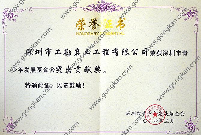 2014年公司荣获深圳市青少年发展基金会突出贡献奖