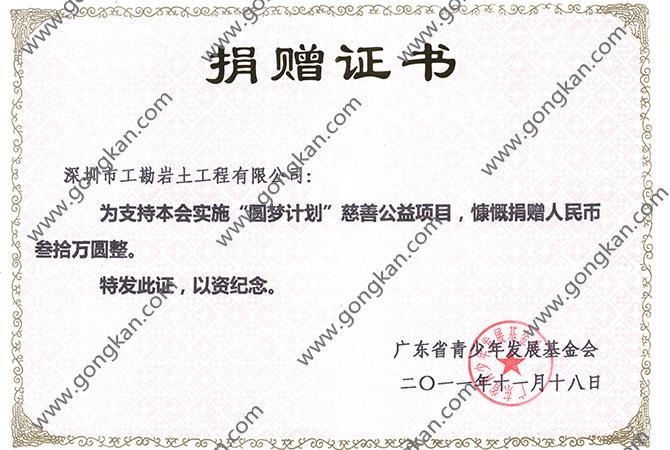 -2011-广东省青少年发展基金会 圆梦计划 捐赠证书