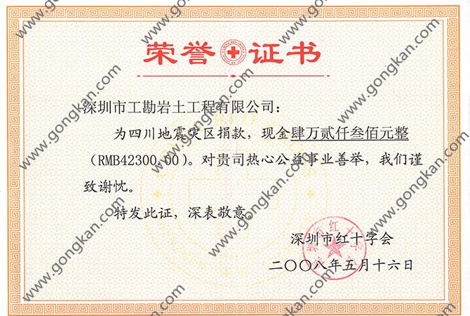 2008-四川地震灾区捐款荣誉证书