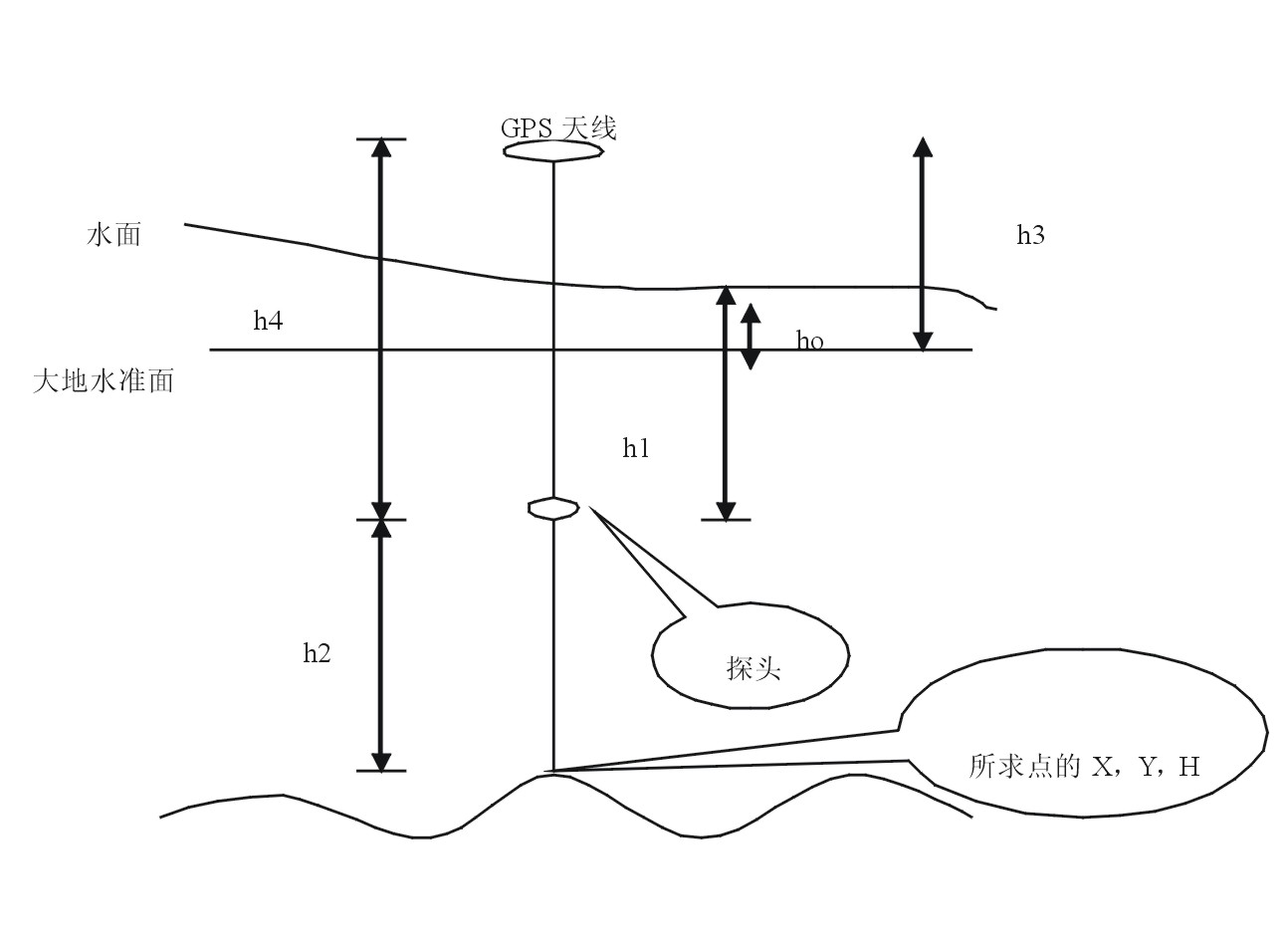 近年来,我集团在海洋测绘方面取得了很大的进步,承担了多个海洋工程测量项目。在这些工程应用中,我们开发了专门的数据处理,对测量的数据(gps数据和测探数据)进行了处理并建立海底数字高程模型,取得了较好的成果。 gpsrtk+回声探测仪海洋测量方法是结合gps定位技术和水深测绘技术来测量和获取海底坐标和高程的一种解决方案。水下地形测量的主要任务是确定水下某一点的平面坐标和海底高程(x,y,h),其测量工作原理见其图。