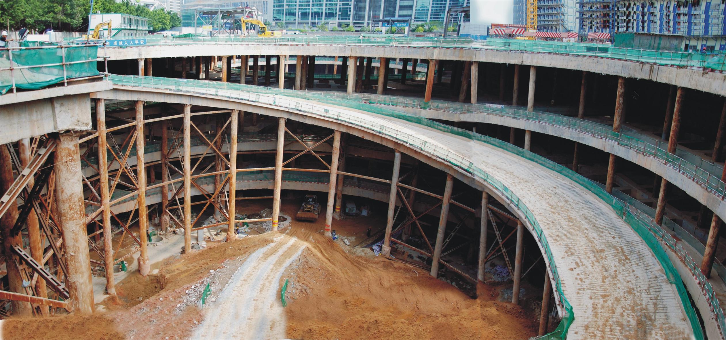 平安国际金融中心用地面积18931㎡,总建筑面积460776㎡。场地内拟建一栋超高层办公楼:塔楼高度588m(115层),地下室5层。结构体采用混凝土核心筒、钢管柱超级巨柱框架、混凝土外伸臂墙、及v型支撑的组合体系。整个地下室采用桩筏基础,塔楼范围筏板5000mm厚,塔楼范围外筏板3000mm,裙房筏板2000mm厚,土方开挖最大开挖深度约33.80m。我集团对基坑进行自动化监测,实现基坑施工过程和监测数据的网络化、三维可视化管理。