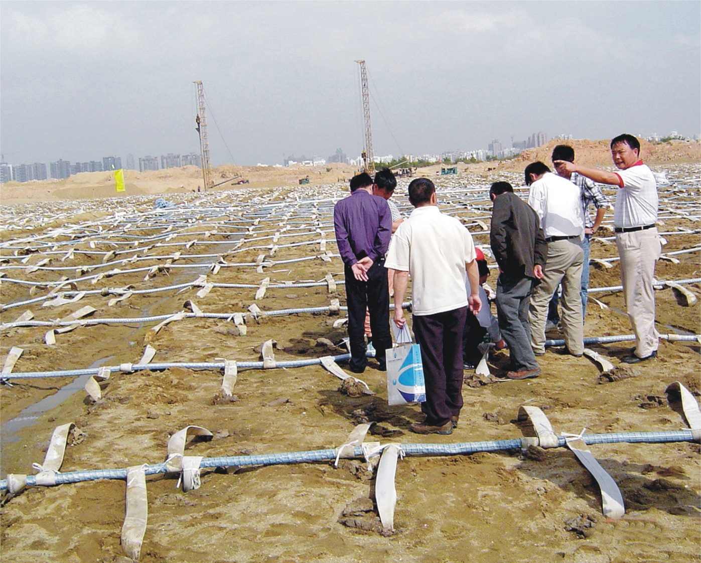 察看工程进度情况(前海填海区d1地块软基处理施工检测工程)