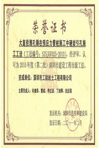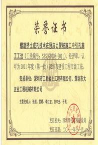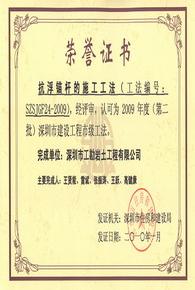“深厚填石层φ800mm、超深预应力管桩综合施工工法”(2014)